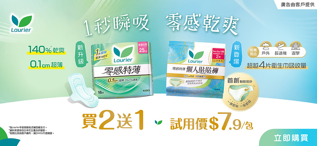 源自日本的Laurier致力為亞洲女性提供多樣化的女性衛生用品,全方位呵護女性不同日子的需要,無論任何時候都可以無憂做自己,日夜零負擔!